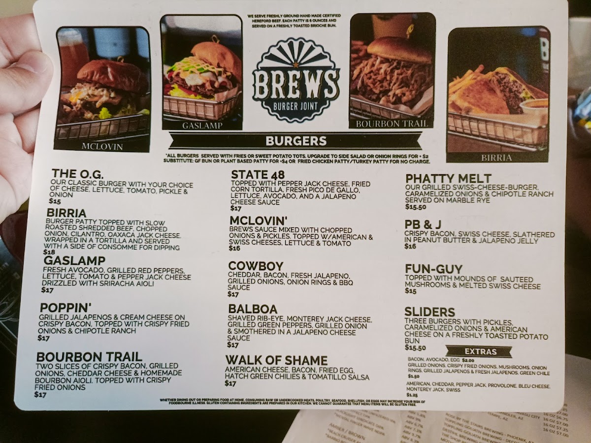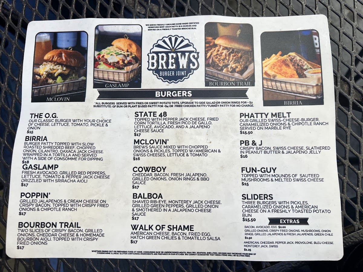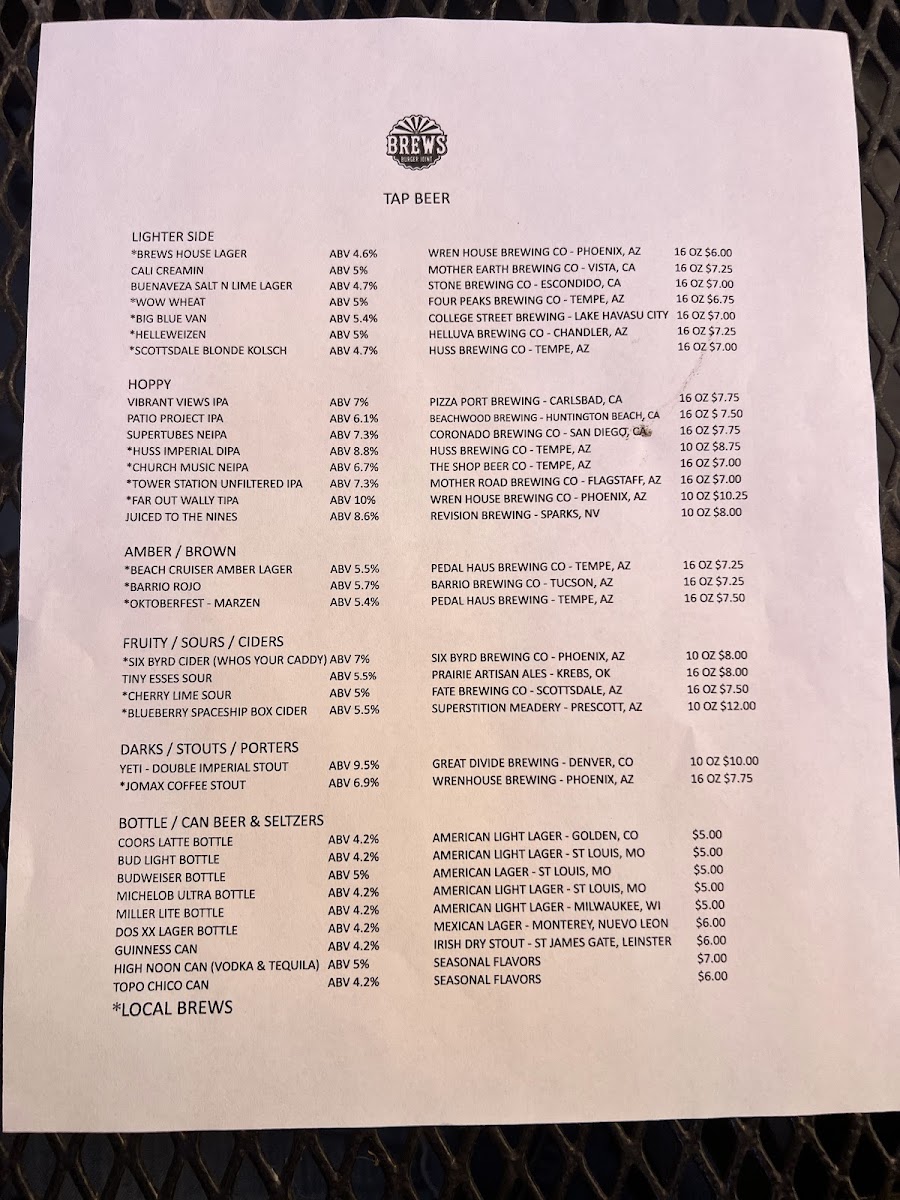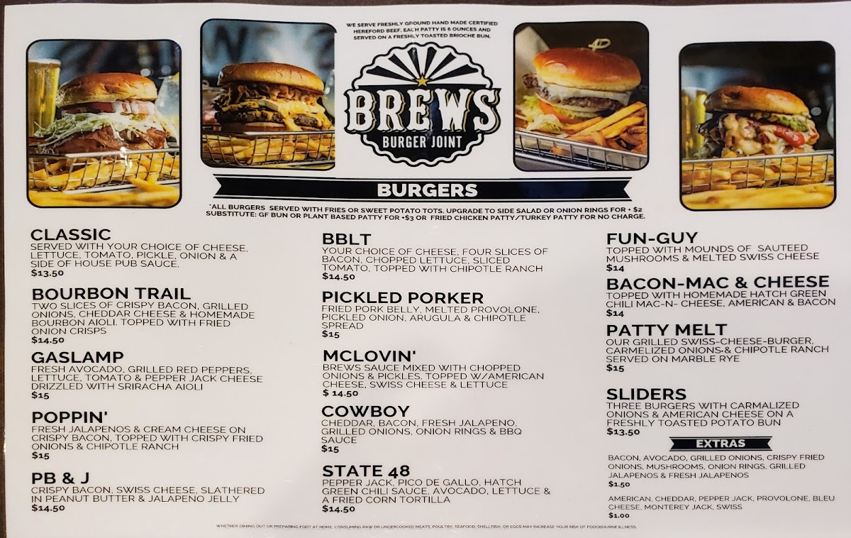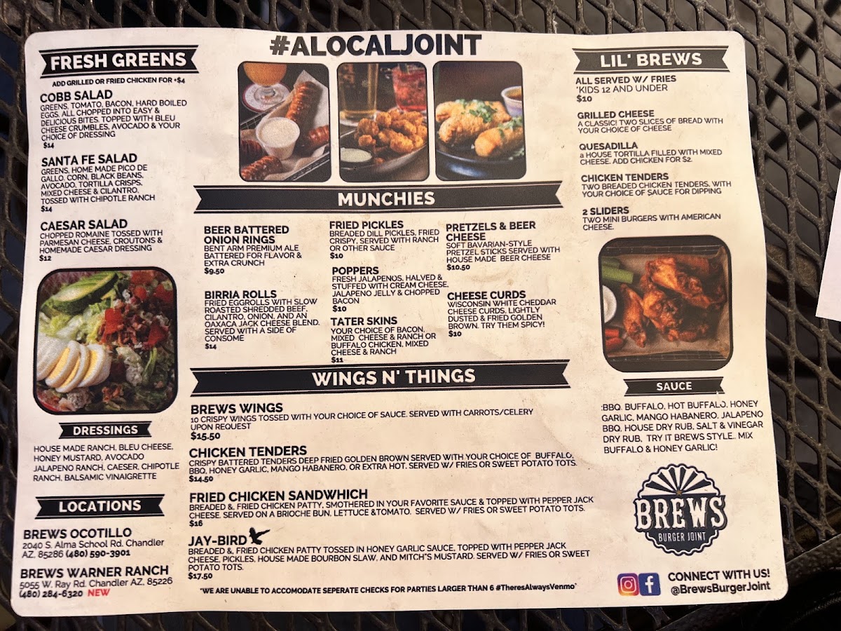 At Brews - A Taphouse And Gourmet Burger Joint Menu, you’re in for a real treat. Located at 2040 S Alma School Rd in Chandler, this spot is all about combining top-notch craft beers with mouthwatering gourmet burgers. Whether you're in the mood for something bold or a little more classic, the menu has a delicious variety that’s bound to satisfy. Their burgers are made with fresh, quality ingredients, perfectly paired with a wide selection of beers on tap. It's the kind of place where you can relax, enjoy great food, and have a refreshing drink, all in a casual, welcoming atmosphere. Perfect for a night out with friends or a relaxed lunch break, Brews brings together everything you need for a great dining experience.